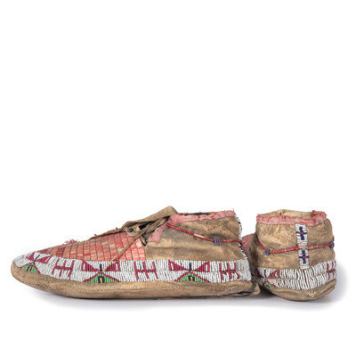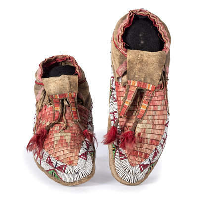 Sioux Quilled and Beaded Hide Moccasins
