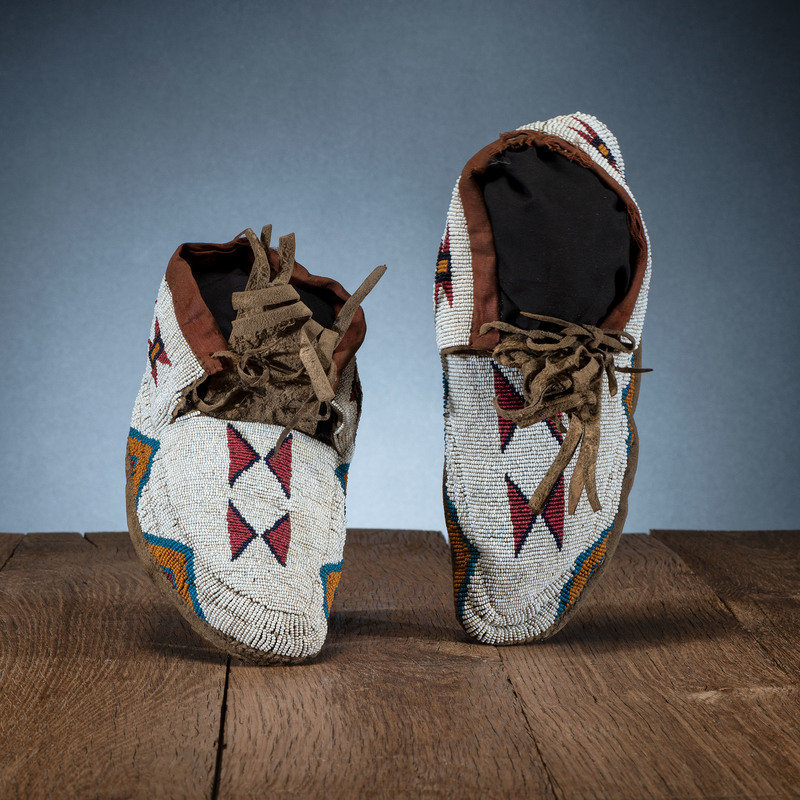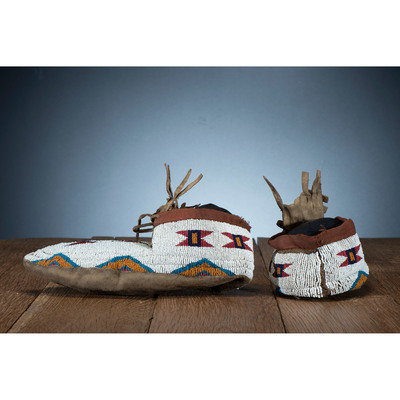 A'aninin Beaded Buffalo Hide Moccasins