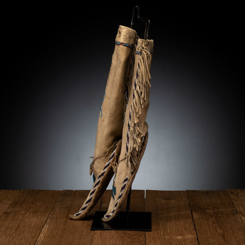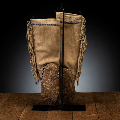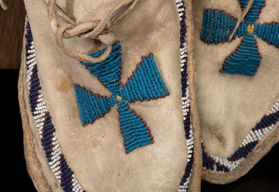 Apache Beaded Hide Moccasins, Signed by Geronimo
