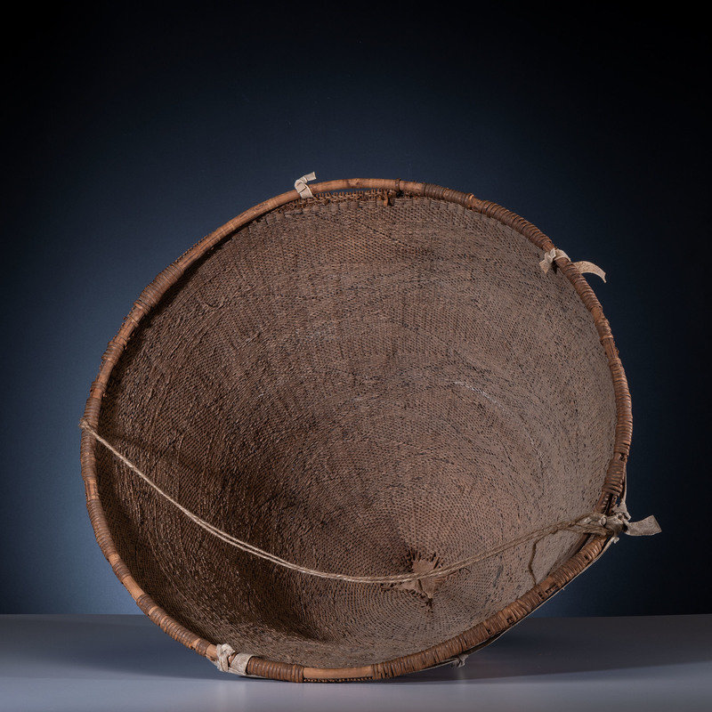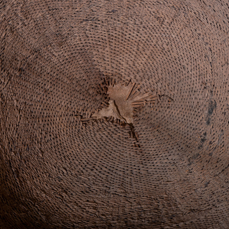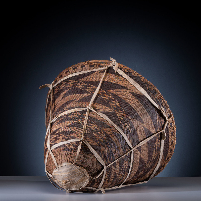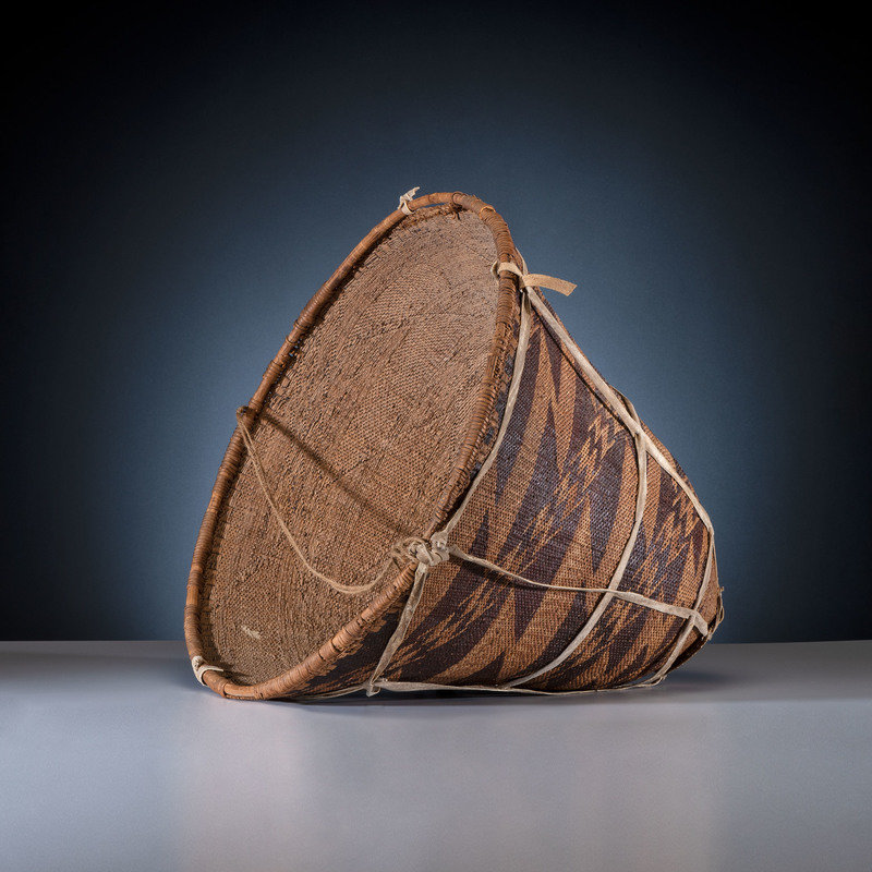 large form woven of sedge and redbud; designed with diagonally arranged zigzags and triangles