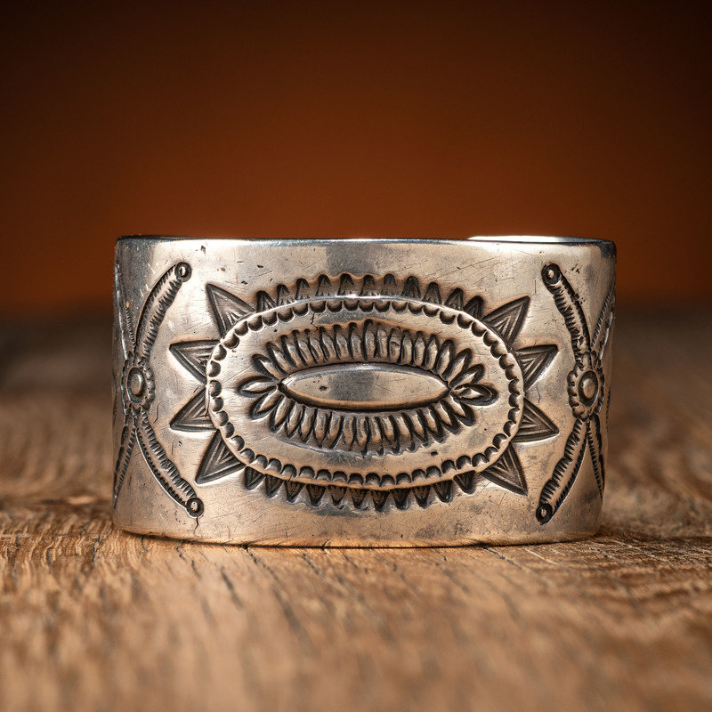 Navajo Stamped Silver Ingot Cuff Bracelet