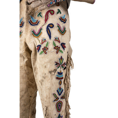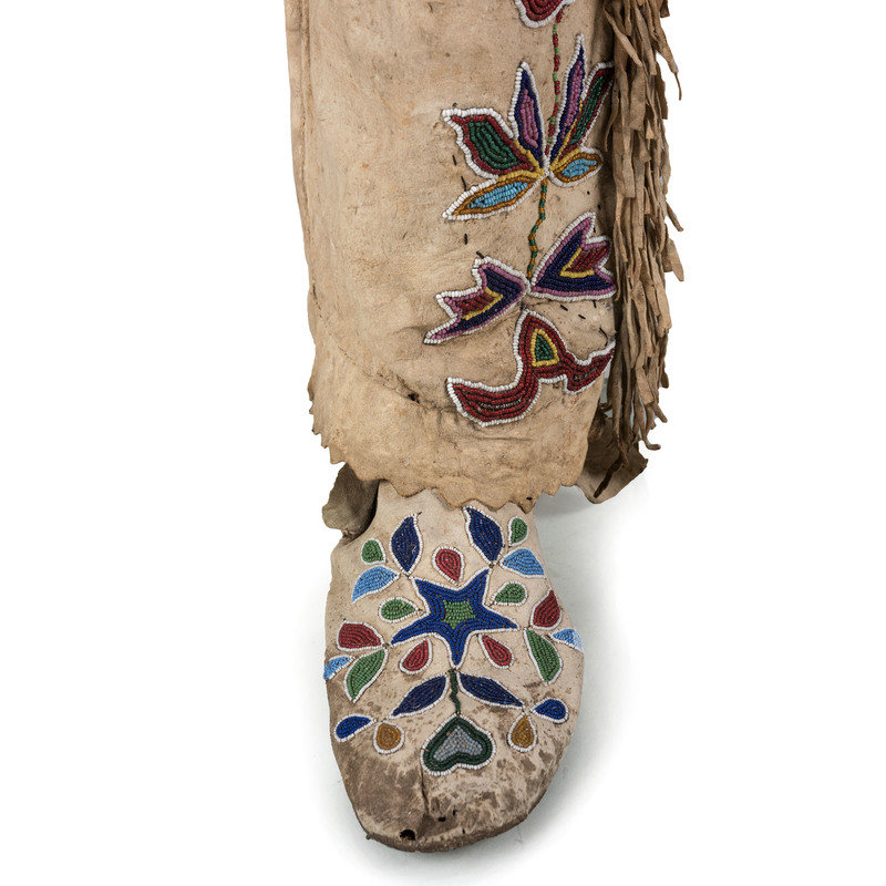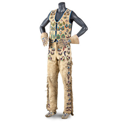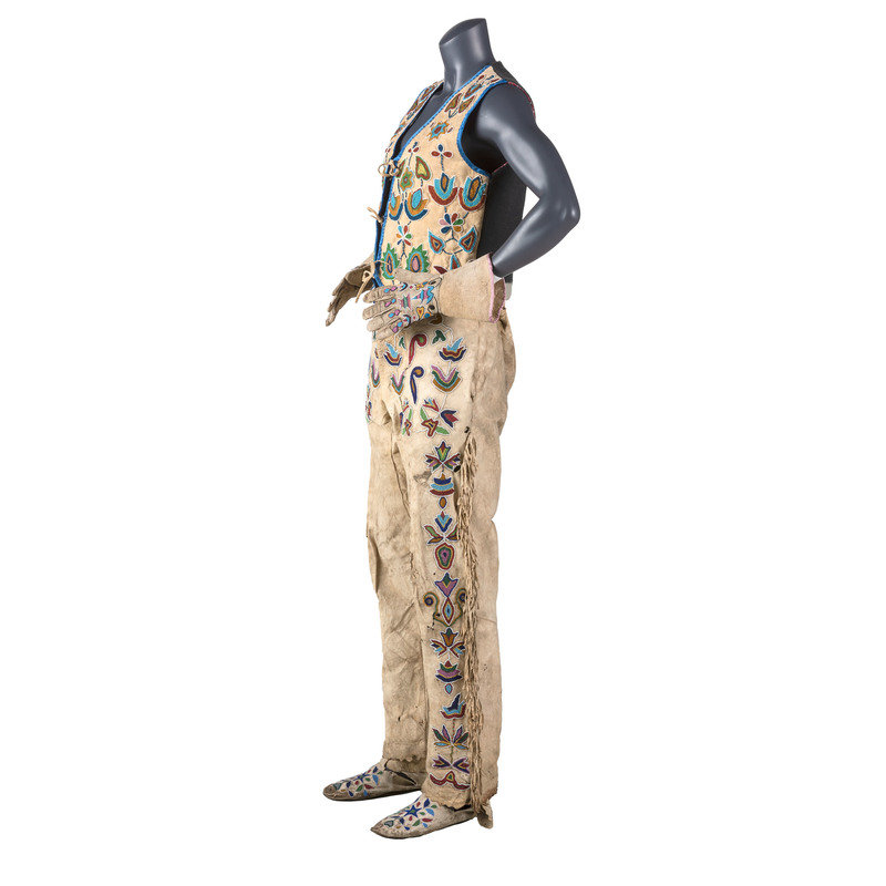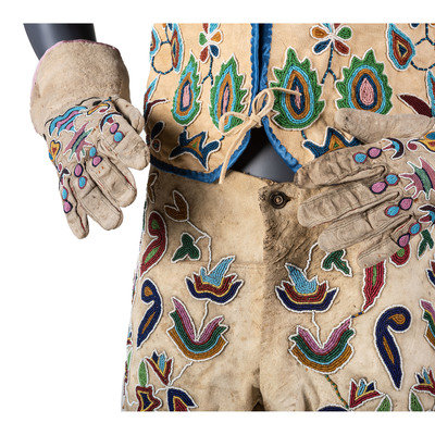 Apsáalooke (Crow) Beaded Hide Vest, Gauntlets, Pants, and Moccasins