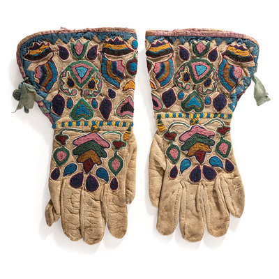 Apsáalooke (Crow) Beaded Hide Gauntlets