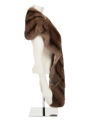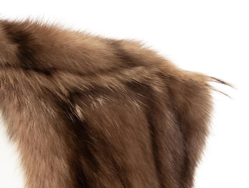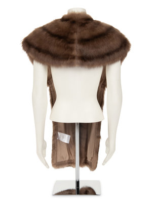 Brown and tan striped sable fur shrug with badger fur details and lined in tan silk satin.