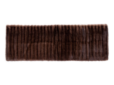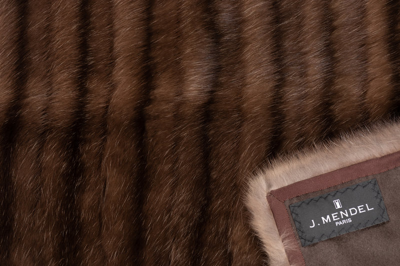 Brown striped sable fur wrap lined in gray brown cashmere and brown grosgrain ribbon.