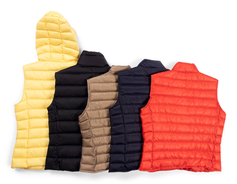 The lot contains five down feather puff vests.