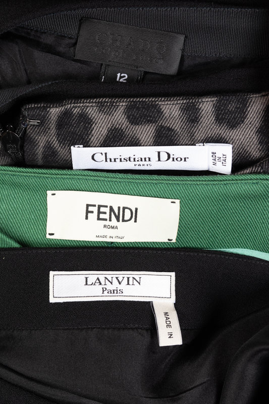 Nine Designer Skirts: Five Ralph Rucci, One Fendi, One Lanvin, and Two Christian Dior