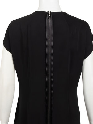 Black wool sleeveless dress.