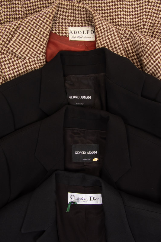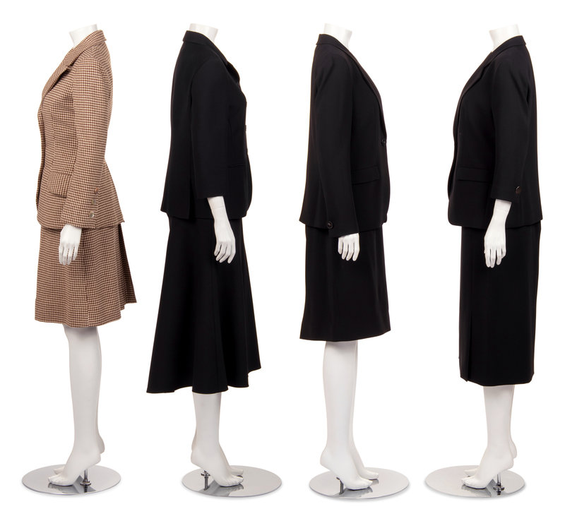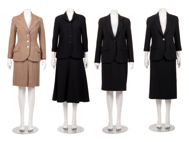 Four Designer Two-Piece Skirt Suits: One Adolfo, One Christian Dior, and Two Giorgio Armani