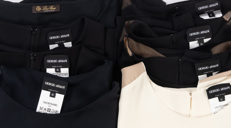 Eight Designer Sleeveless Tops: One Loro Piana and Seven Giorgio Armani