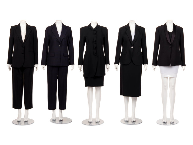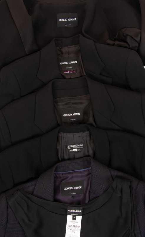 Five Giorgio Armani Ensembles: Two Skirt Suits, Two Pant Suits, One Jacket and Shell