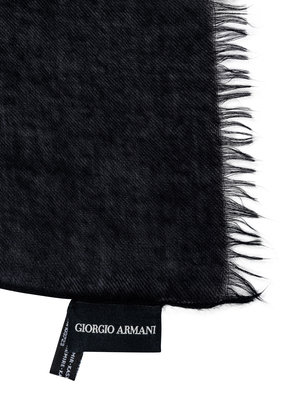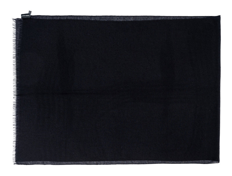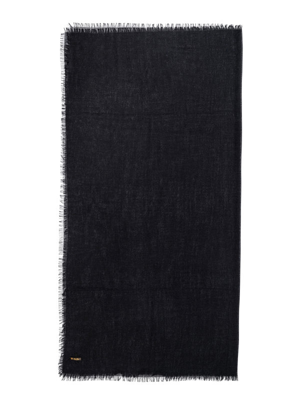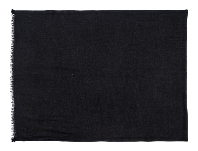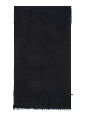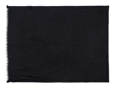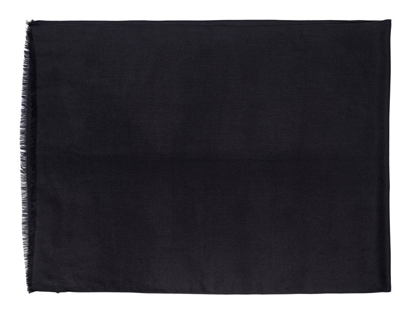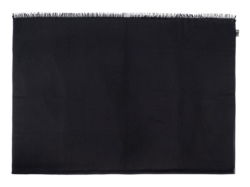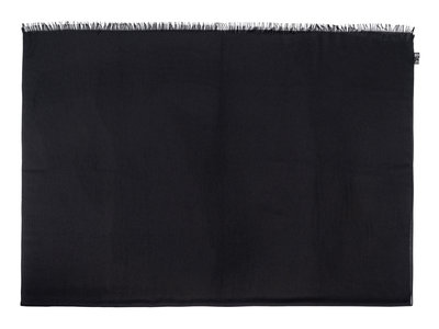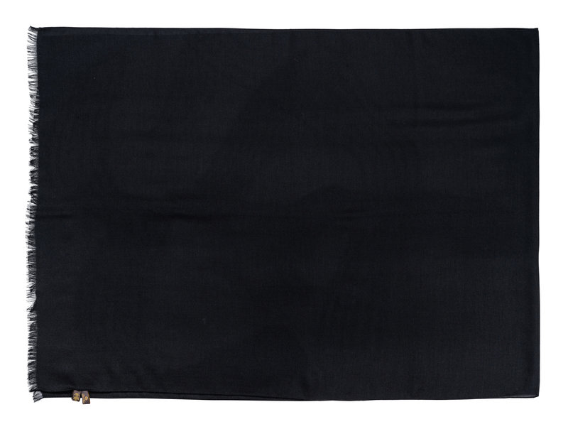 Black cashmere twill scarf with fringe.