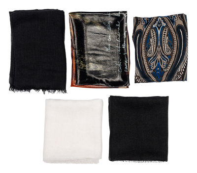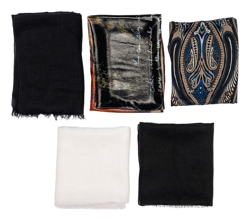 This lot includes five scarves.