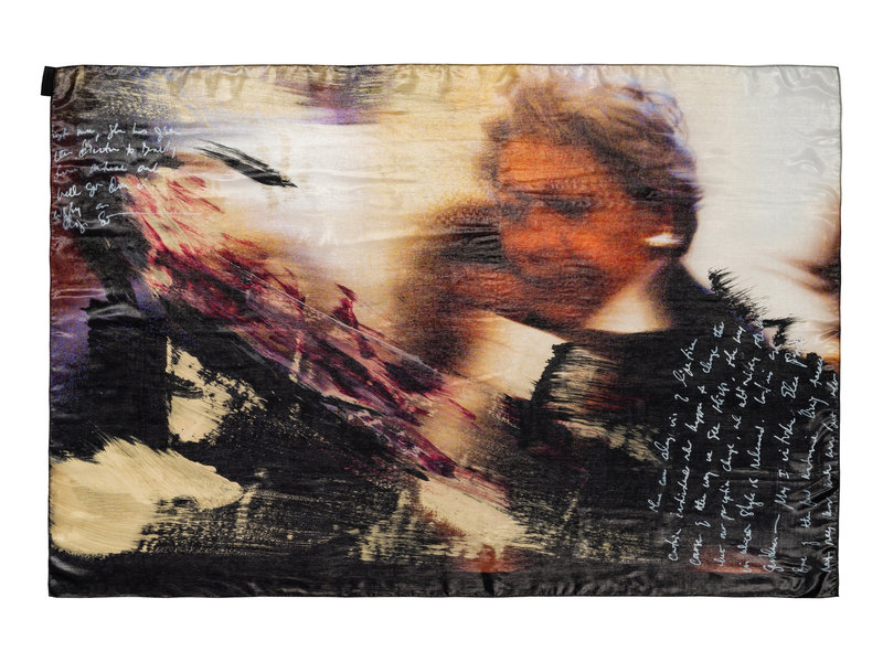 Lamé multicolor text design scarf.