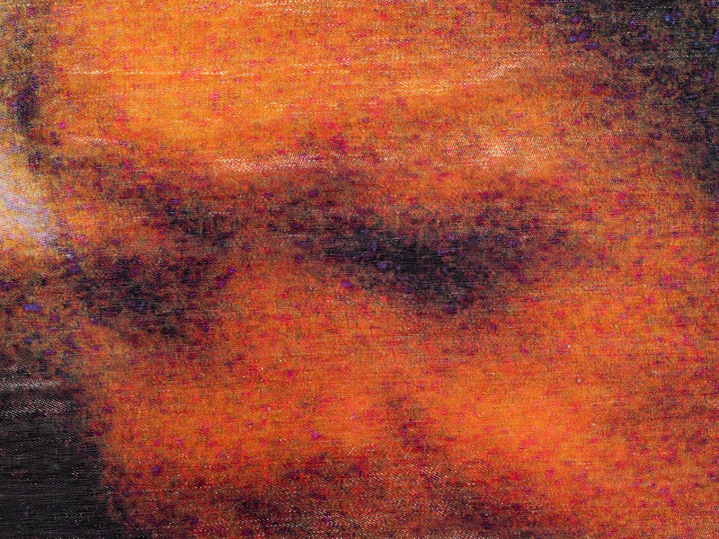 Gray, brown, blue, and black wool/silk blend scarf.