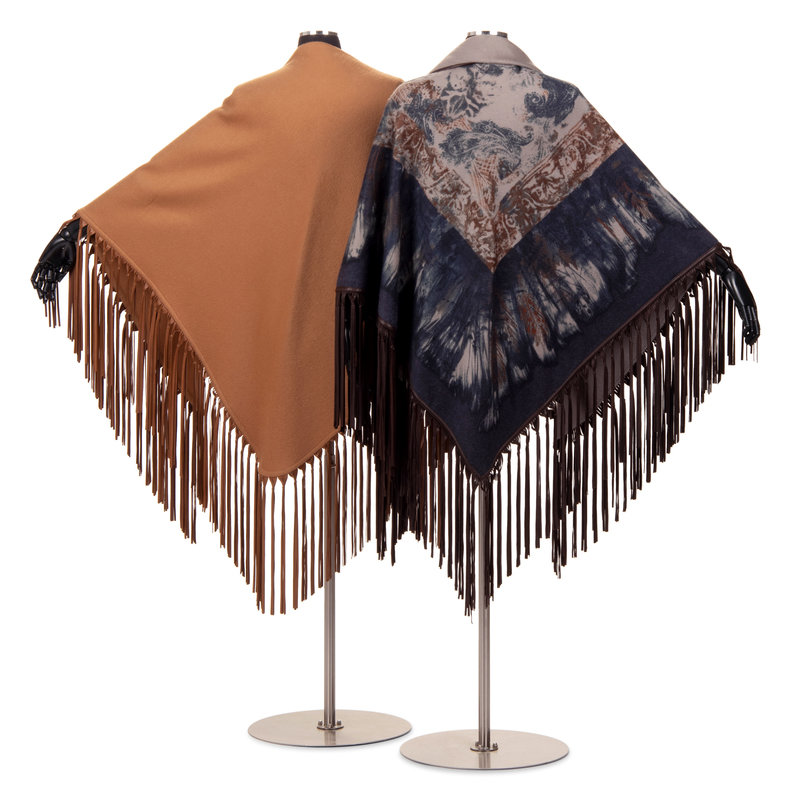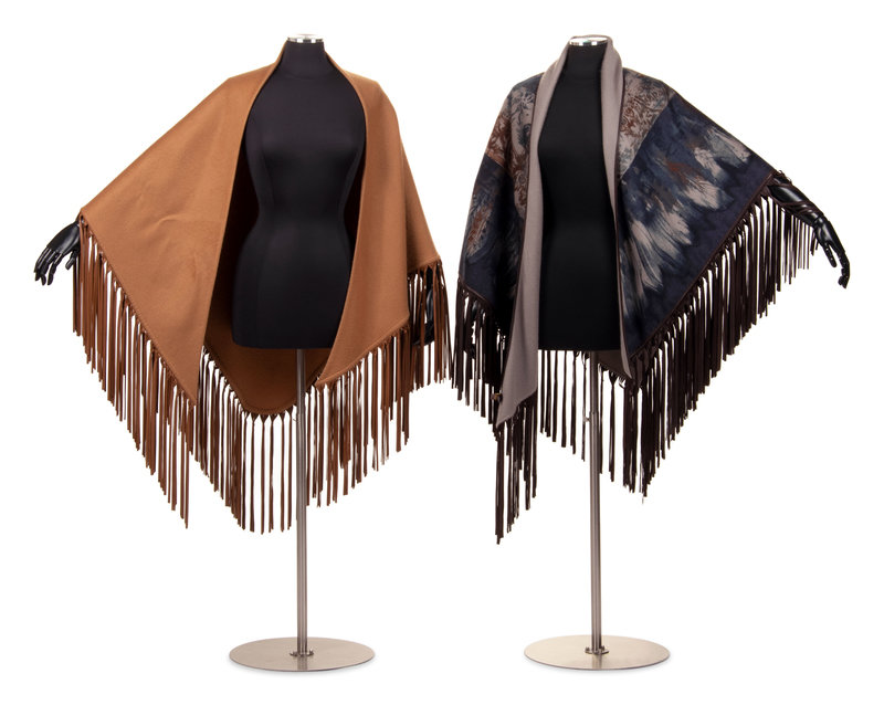Two Cashmere Shawls with Leather Fringe: One Hermès, One Loro Piana