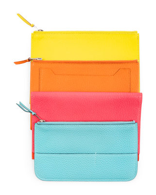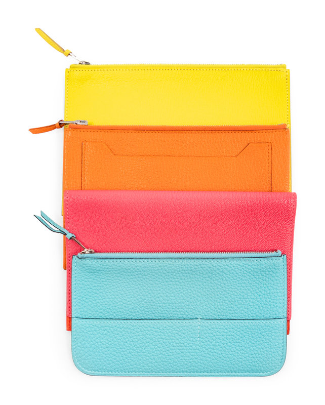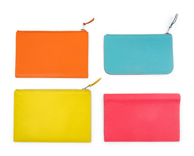 Bright yellow leather zip pouch with front slip pocket.