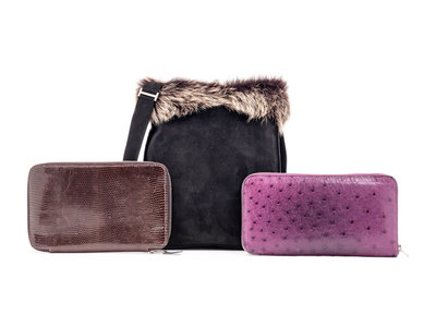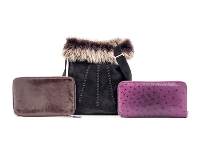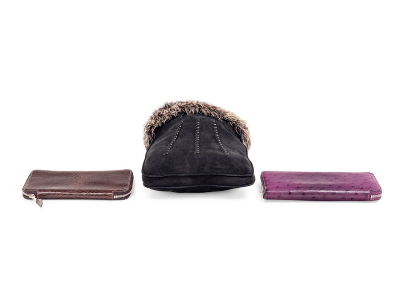 Three Hermès Pieces: One Suede and Fur Trimmed Bag and Two Wallets, 2007- 2010