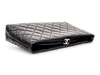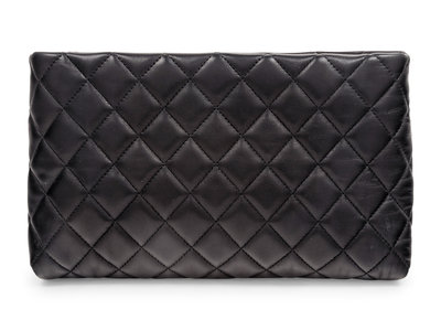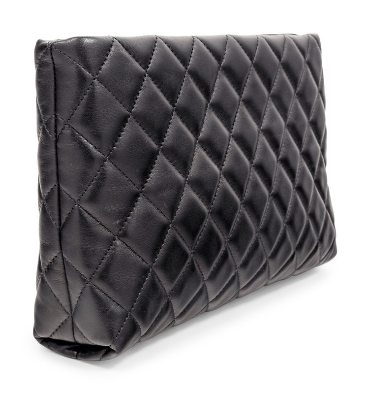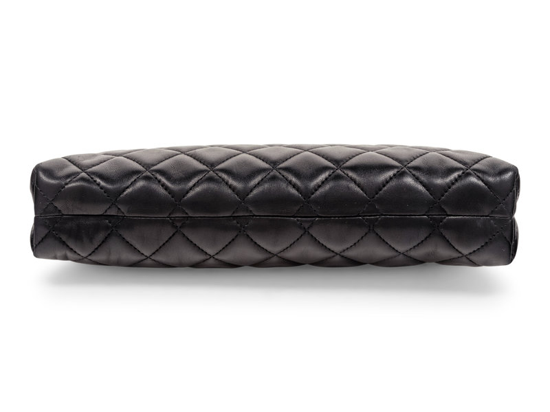 Black quilted leather frame clutch bag lined in black suede and top CC logo clasp.