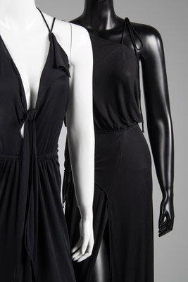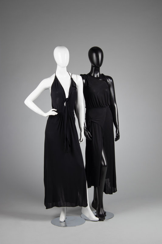 Stephen Burrows’ designs captured the spirit and levity of the time; young and nearly untrained when he rose to prominence, Burrows was unencumbered by the weight of French couture, which affected his more established peers. In these garments, the ties allow for a customized fit and enable the wearer to contour the garment to their body. “Dancing is in my clothes,” said Burrows, “the movement; that you can do anything and feel free in the garment.”