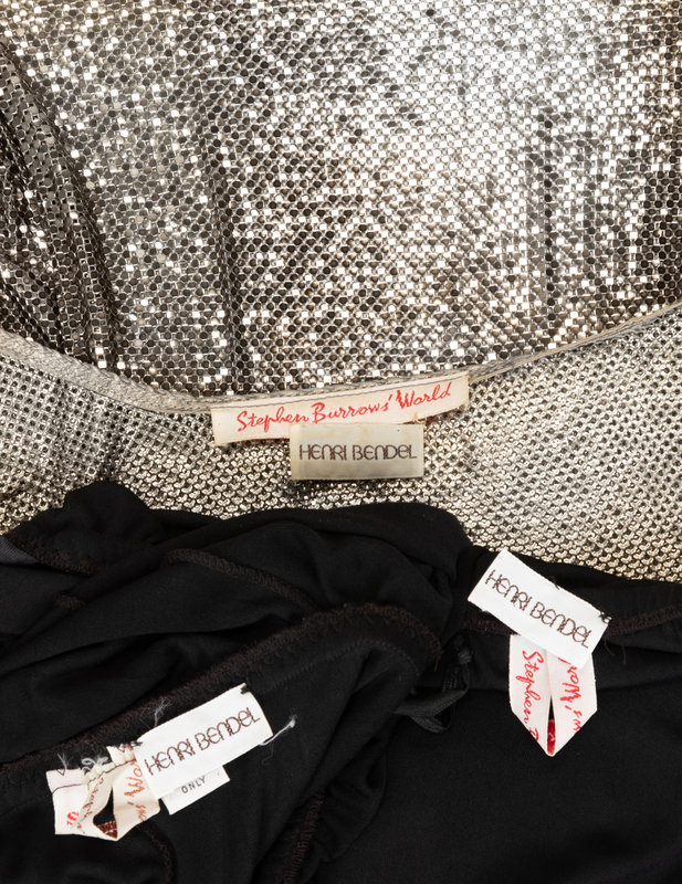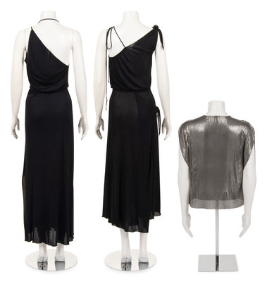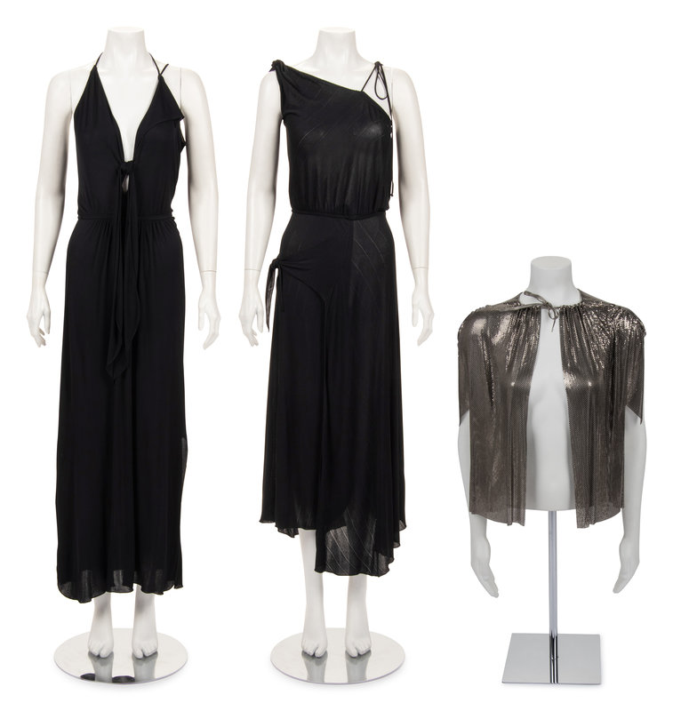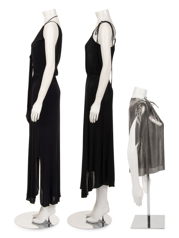 Three Stephen Burrows Pieces: Two Dresses and One Metal Mesh Top, 1970s