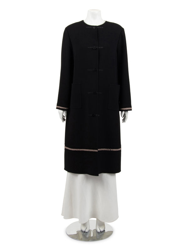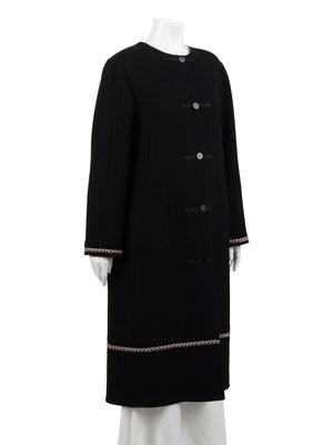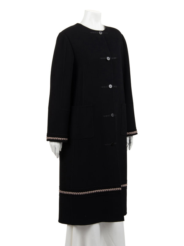 Ralph Rucci Wool Crepe Coat with Knotted Fabric Trim
