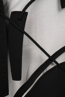 The Spring 2011 ready-to-wear collection was inspired by the work of sculptor Arnaldo Pomodoro, known for his work with forms to address notions of destruction and regeneration. Rucci is frequently inspired by the realm of visual art, and here interprets Pomodoro’s work in the abstract wool cutouts affixed to sheer black tulle, seemingly disconnected from afar.