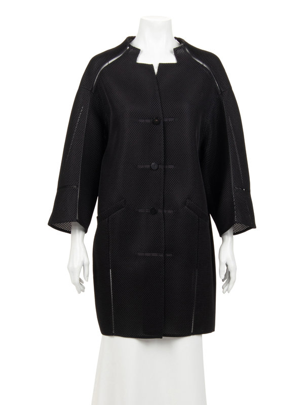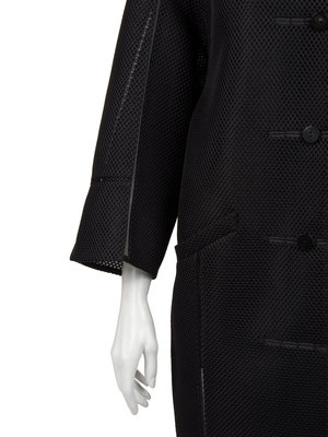 Of this collection, Vogue Runway wrote: “this season the focus was less on his signature surface treatments and more on cut and silhouette... When he did turn his attention to surface details, they were astonishing: wonderful, yet subtle.” This focus is apparent in the softly sloped shoulder and three-dimensional shape formed by the jacket’s structural fabric.