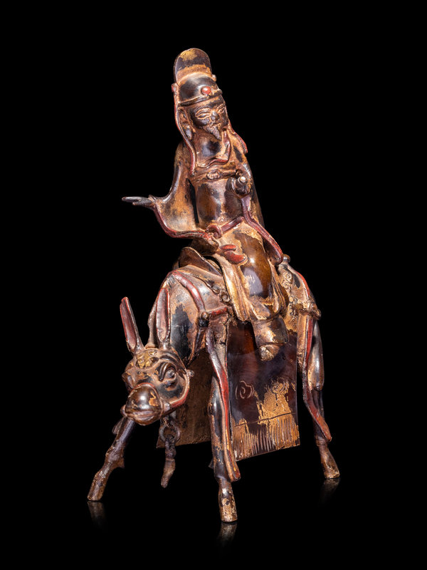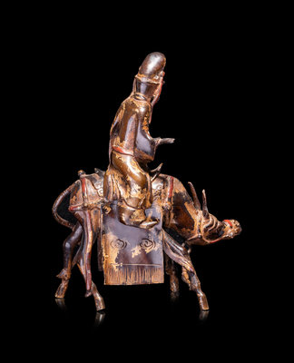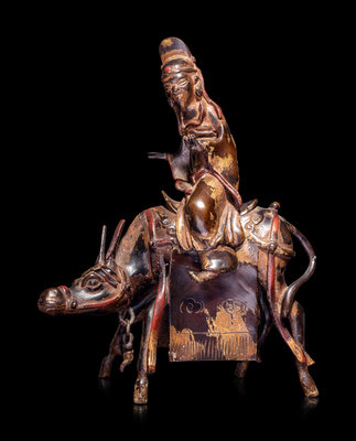 A Chinese Parcel-Gilt Bronze Figural-Form Incense Burner