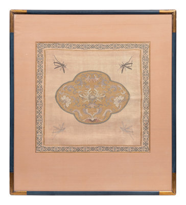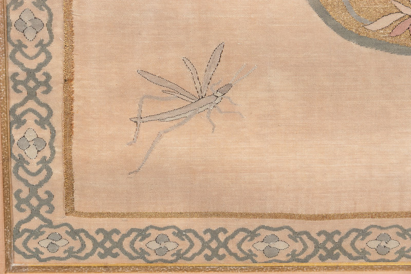 A Chinese Kesi Woven Silk 'Dragonfly and Flower' Panel