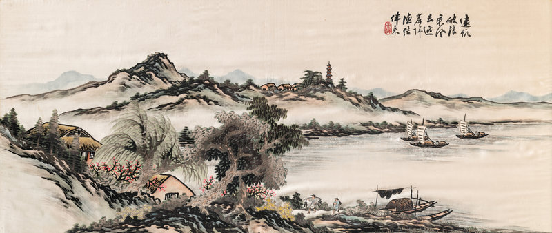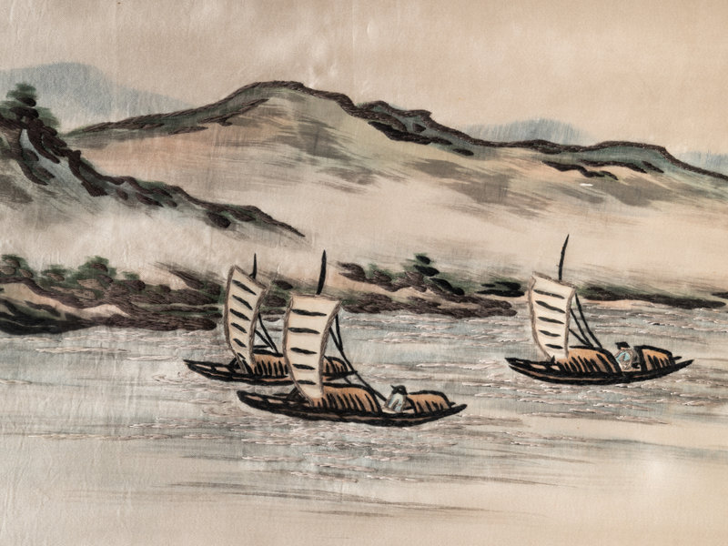 Two Chinese Embroidered Silk Panels