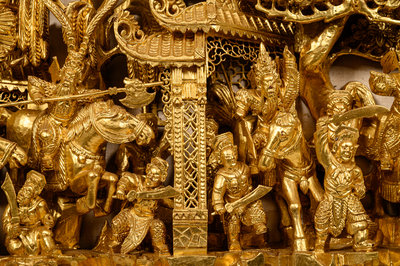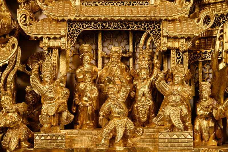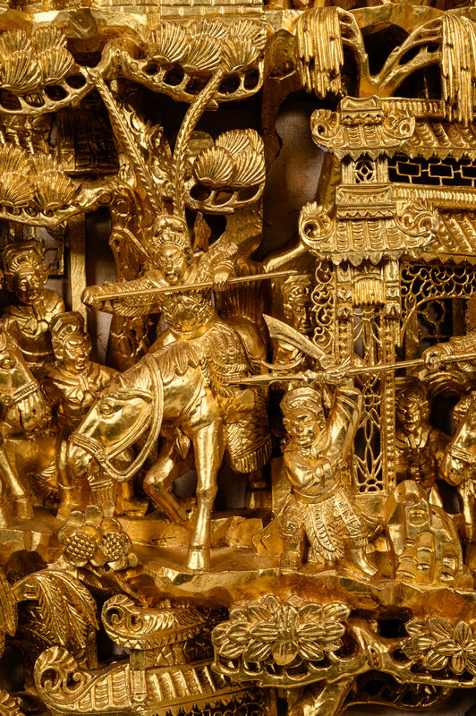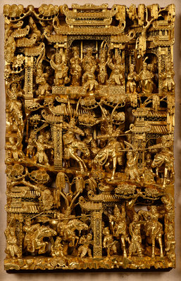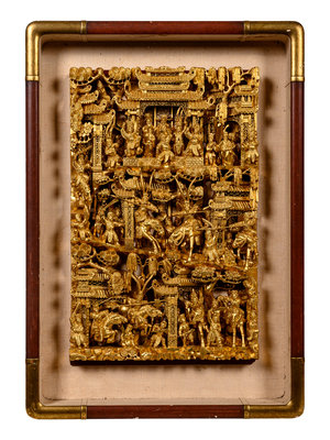 A Chinese Gilt Lacquered Carved Wood Panel