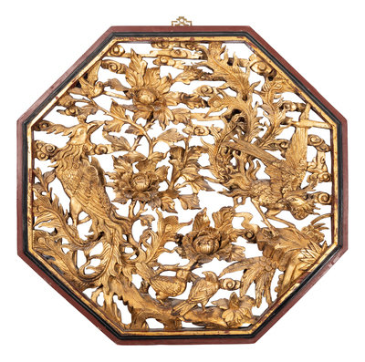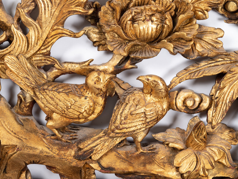 A Chinese Lacquered Carved Wood 'Flower and Bird' Panel