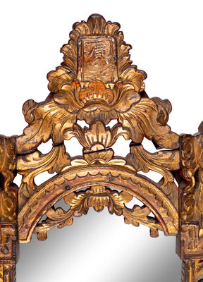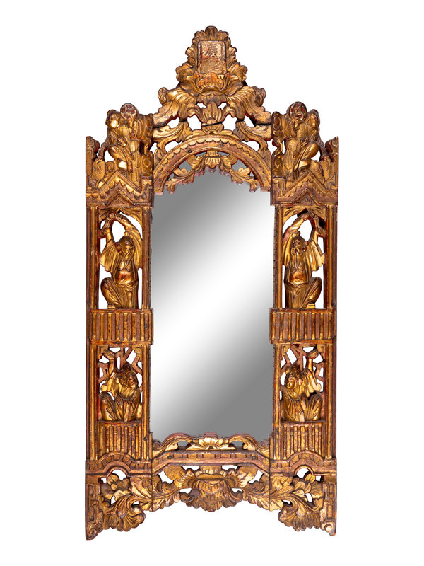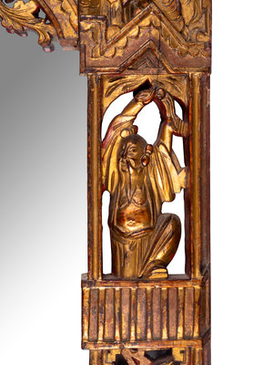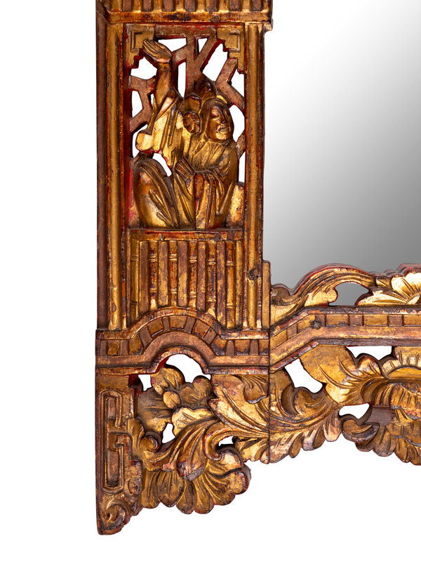 A Chinese Red and Gilt Lacquered Carved Wood Mirror