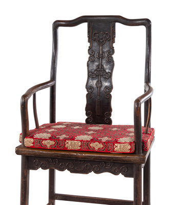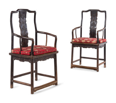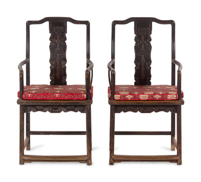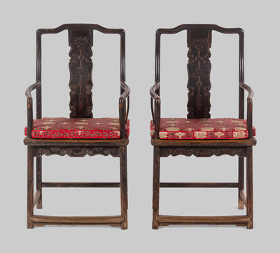 A Pair of Chinese Brown Lacquered Elmwood Scholar's Armchairs, Guanmaoyi