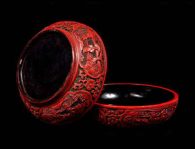 A Chinese Carved Red Lacquer Circular Covered Box