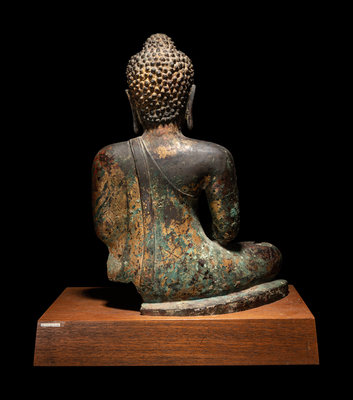 A Thai Gilt Decorated Bronze Figure of Seated Buddha