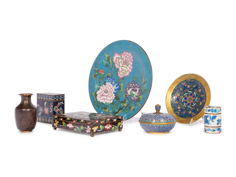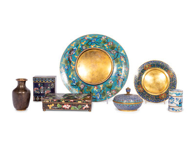 Seven Chinese and Japanese Cloisonné Enamel Wares
