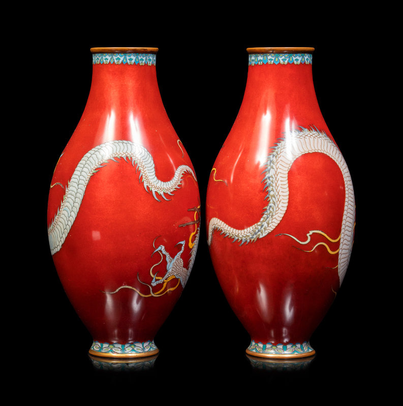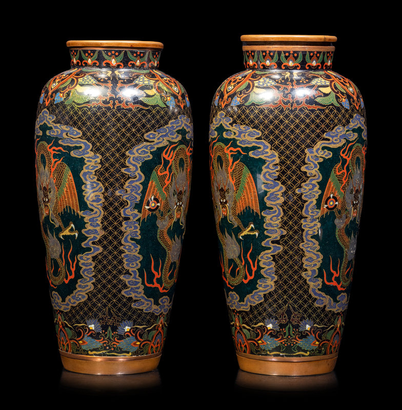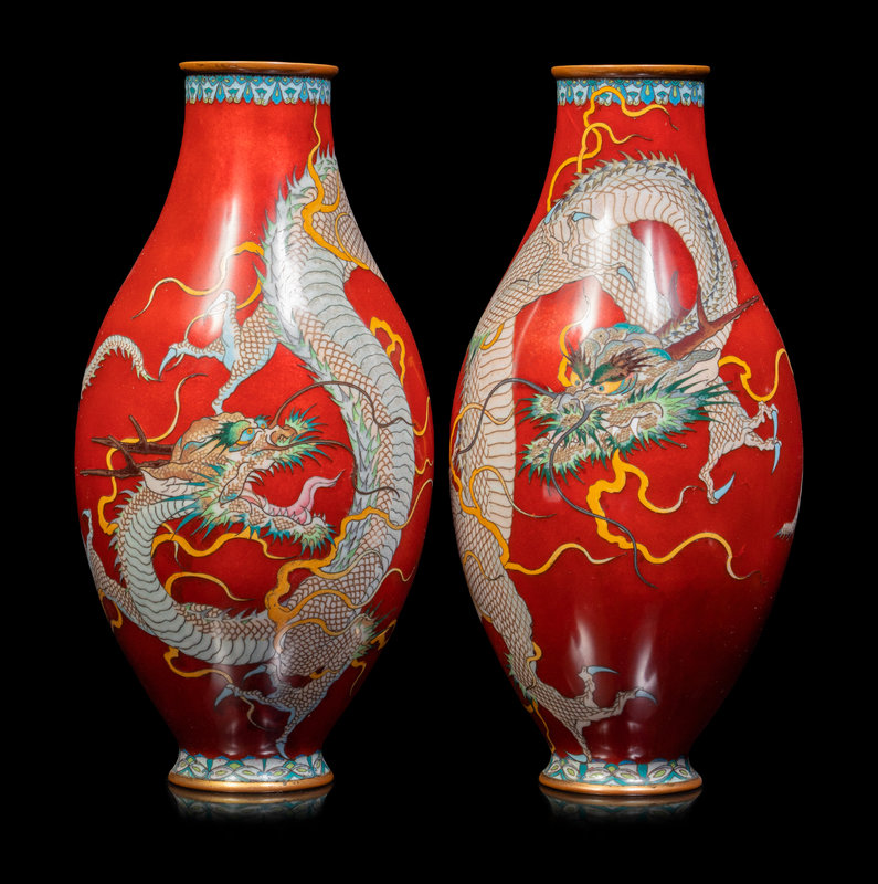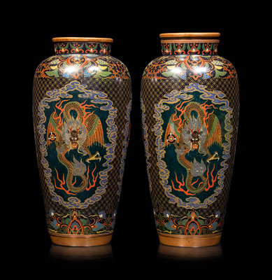 Two Pairs of Japanese Cloisonné Enamel 'Dragon' Vases