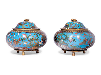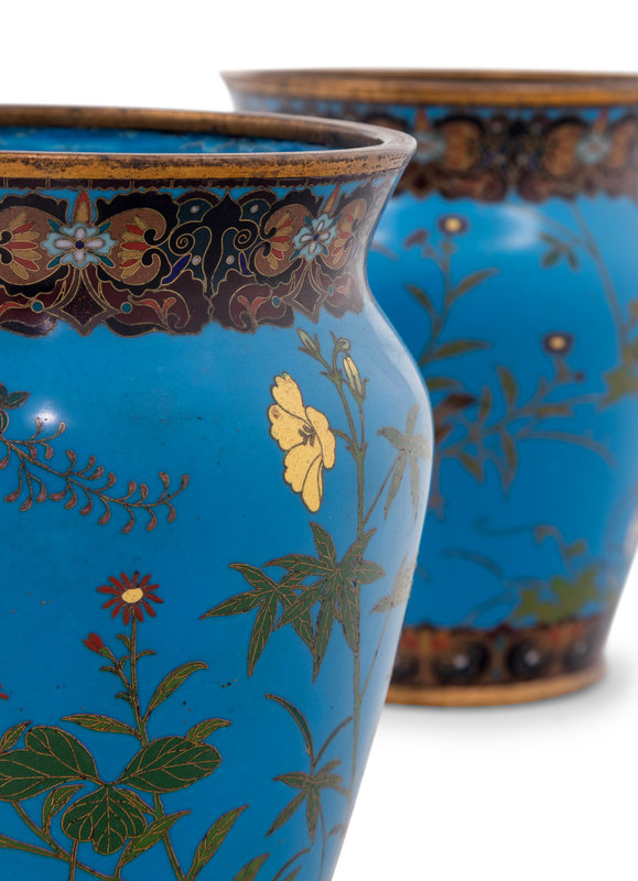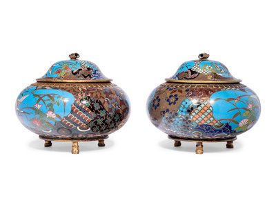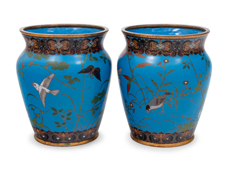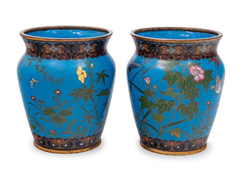 Two Pairs of Japanese Cloisonné Enameled Jars