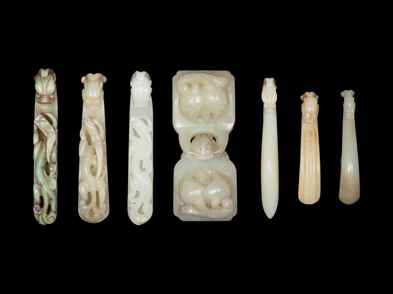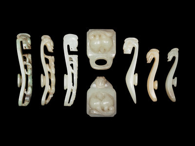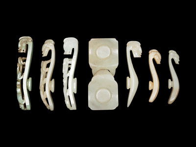 comprising six dragon-head belt hooks, and one buckle carved with peaches.