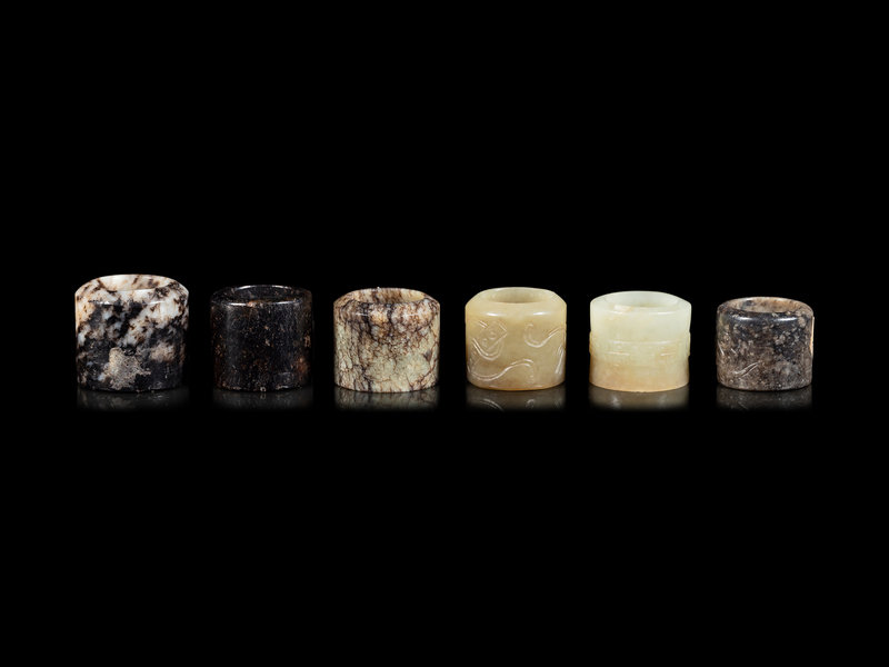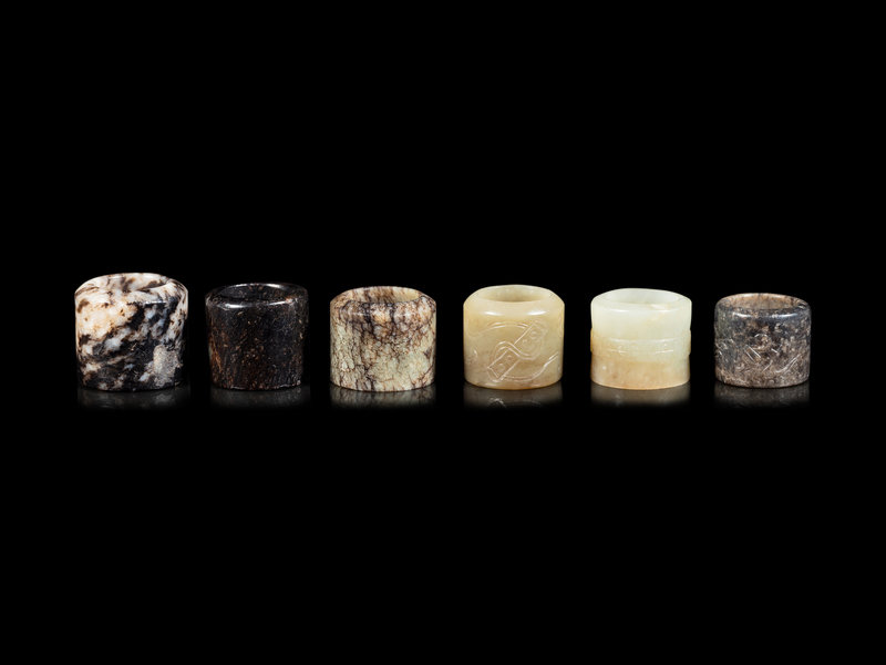 Six Celadon Jade Carved Jade Archer's Rings