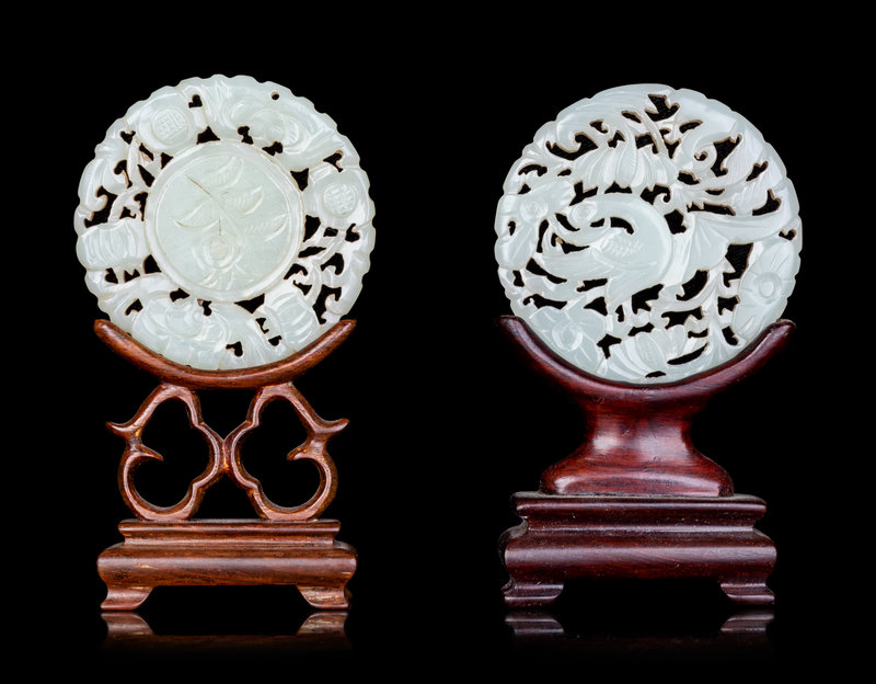 Two Chinese Pale Celadon Jade Mounted Table Screens