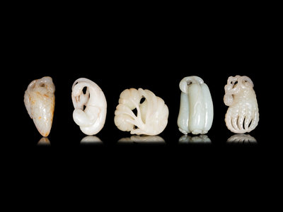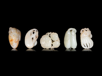 Five Chinese Carved Figures of Fruits