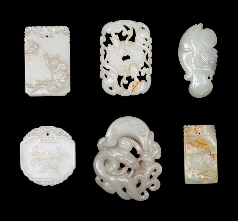 Five Chinese Carved Celadon Jade Pendants