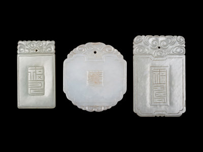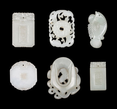 comprising two rectangular plaques, one oval plaque, two reticulated plaques, and one pendant.