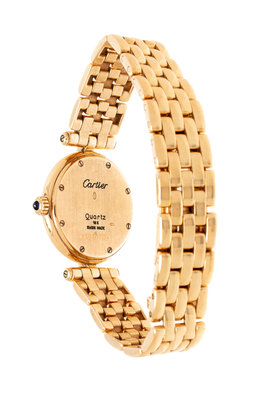 Case back stamp: Cartier (maker's mark) Quartz 18 K (Swiss hallmark) SWISS MADE 669202003.