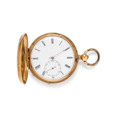 18K YELLOW GOLD HUNTER CASE POCKET WATCH