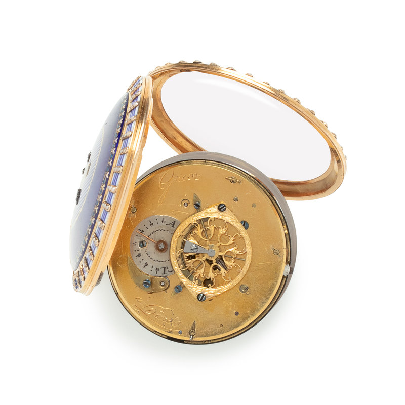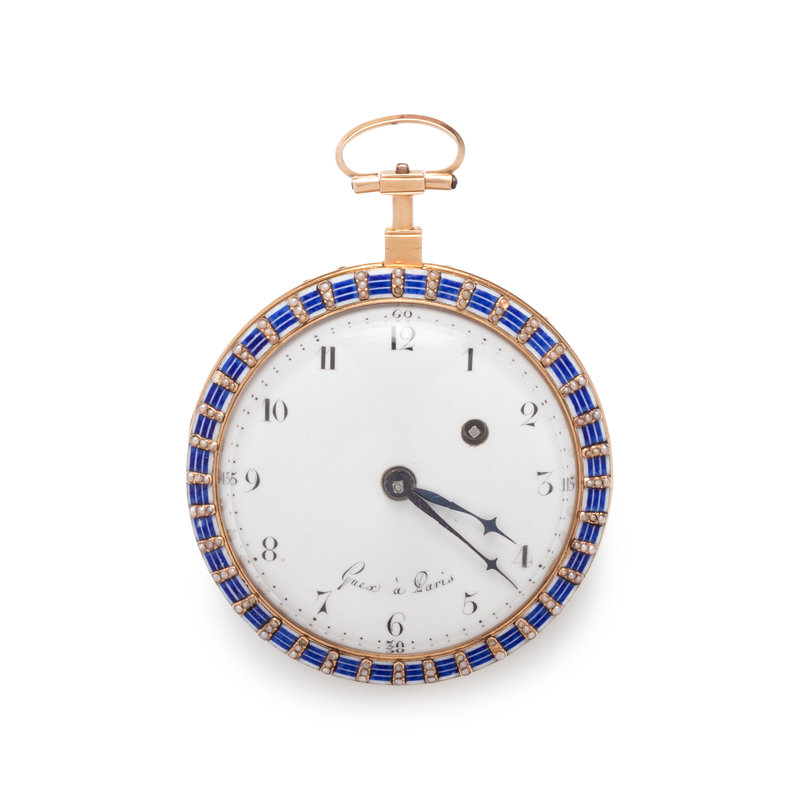 GUEX, ENAMEL AND SEED PEARL OPEN FACE POCKET WATCH