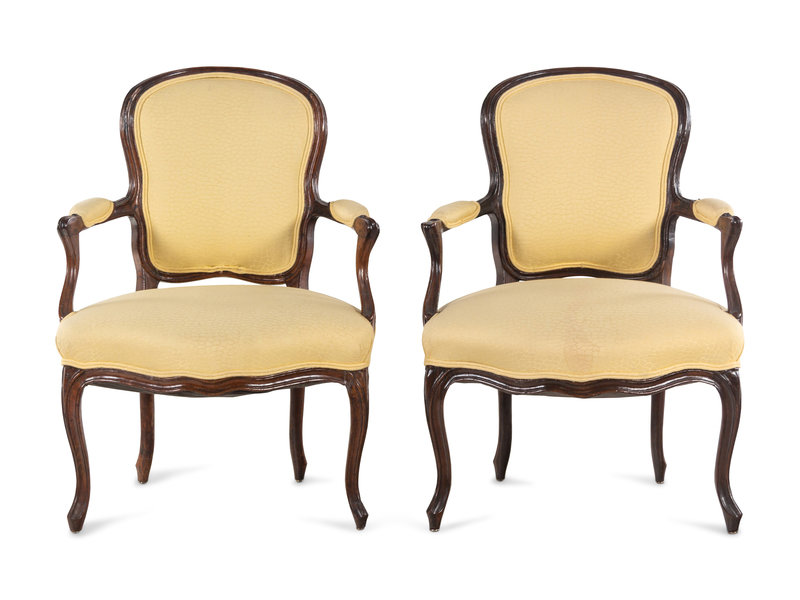 A Pair of Louis XV Beechwood or Walnut Fauteuils